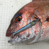 Falling while riding on the tide and is closer to a fly of fly fishing than a metal jig.